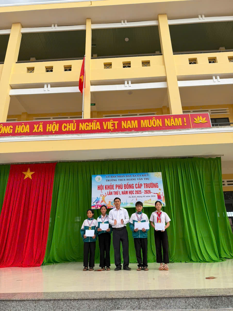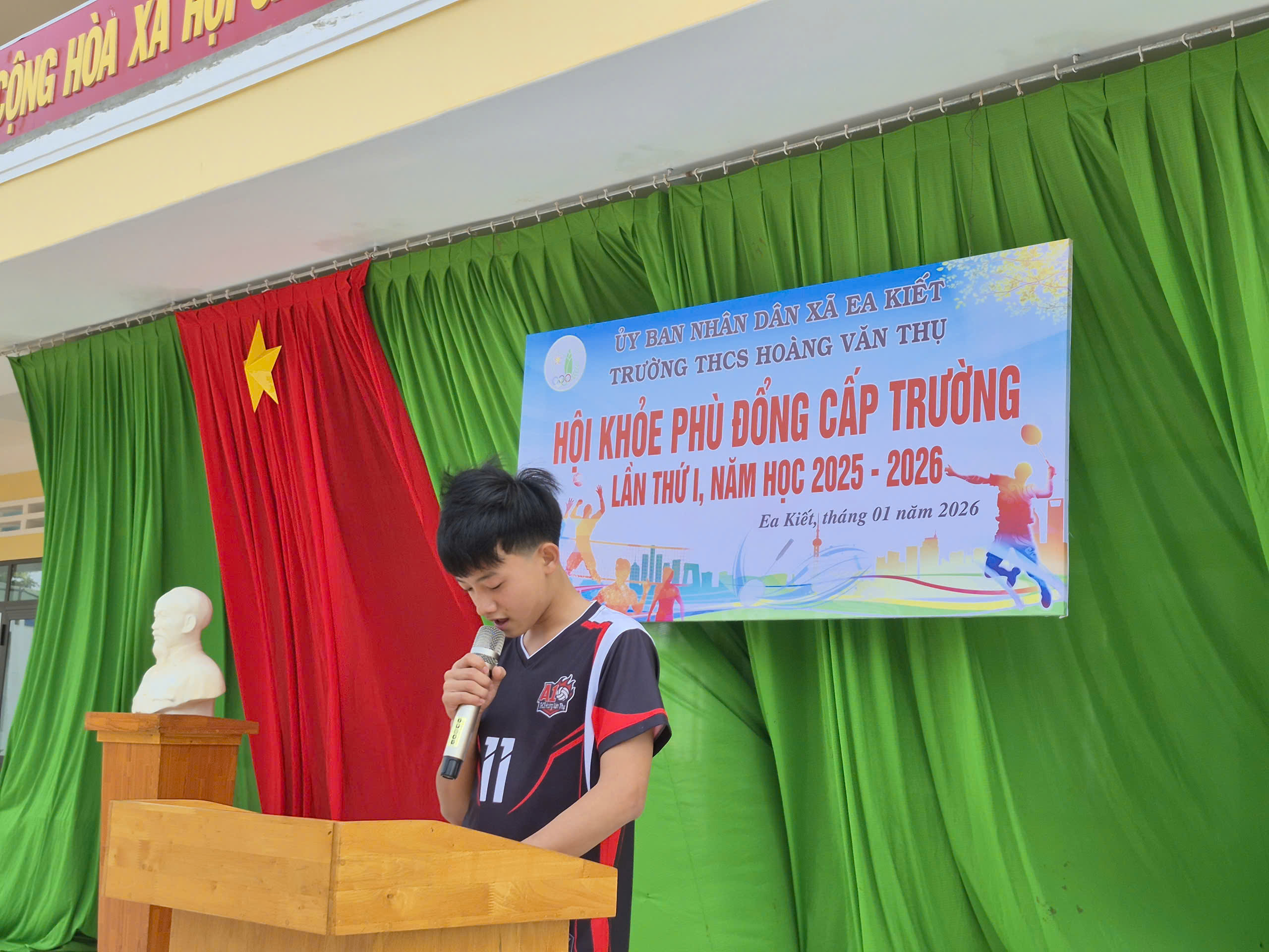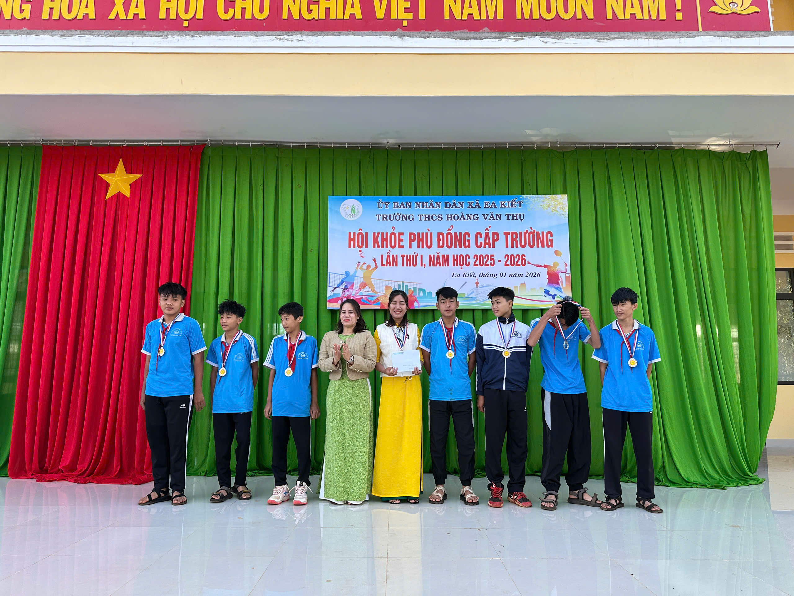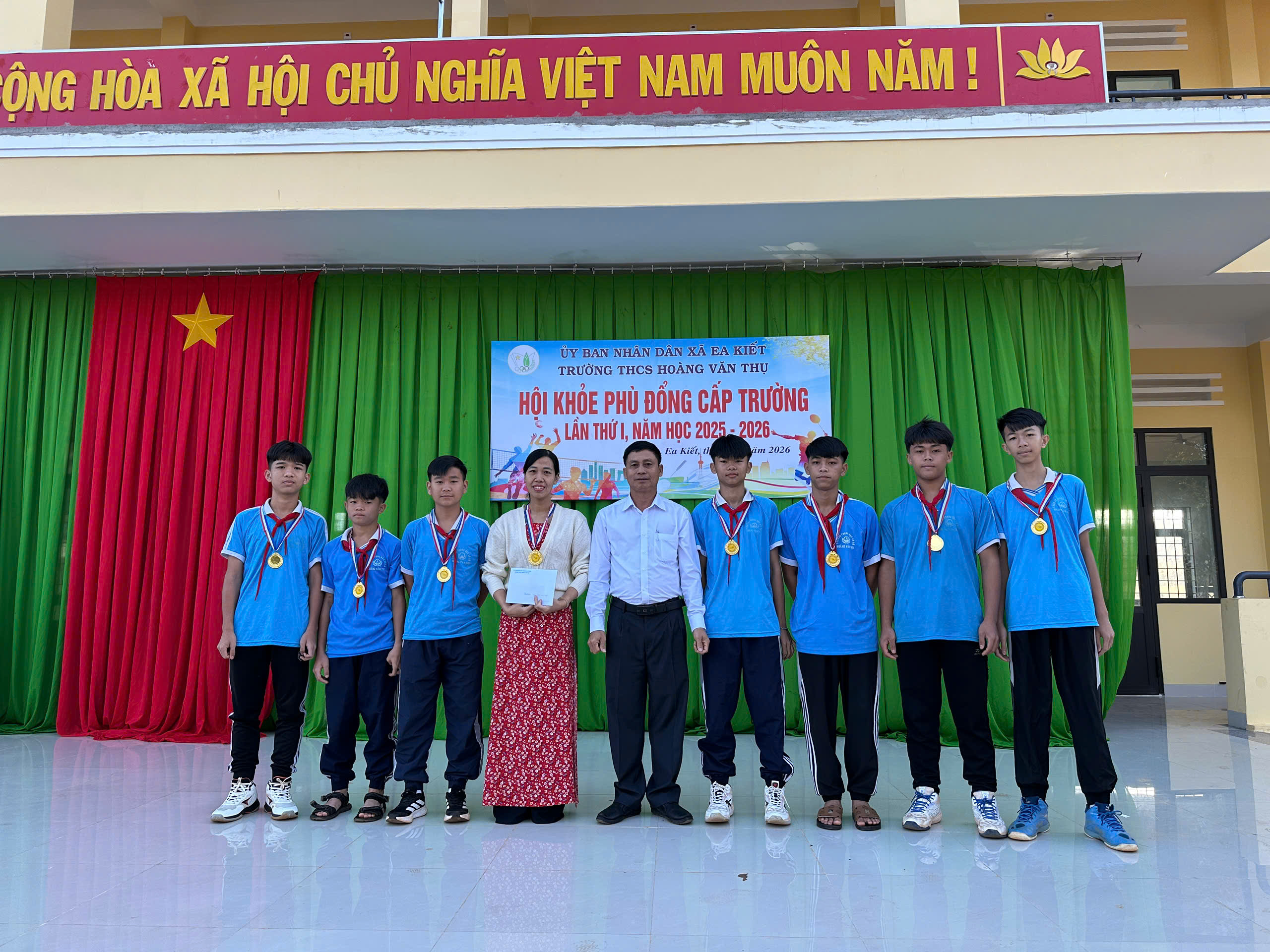 Thực hiện kế hoạch số 08/KH-HVT ngày 015/1/2026 của Trường THCS Hoàng Văn Thụ, nhằm chào mừng Thành công Đại hội đại tiểu toàn quốc và mừng xuân Bính Ngọ. Nhà trường đã long trọng tổ chức Hội khỏe Phù Đổng cấp trường năm học 2025–2026 với tinh thần “Khỏe để học tập, xây dựng và bảo vệ Tổ quốc”.