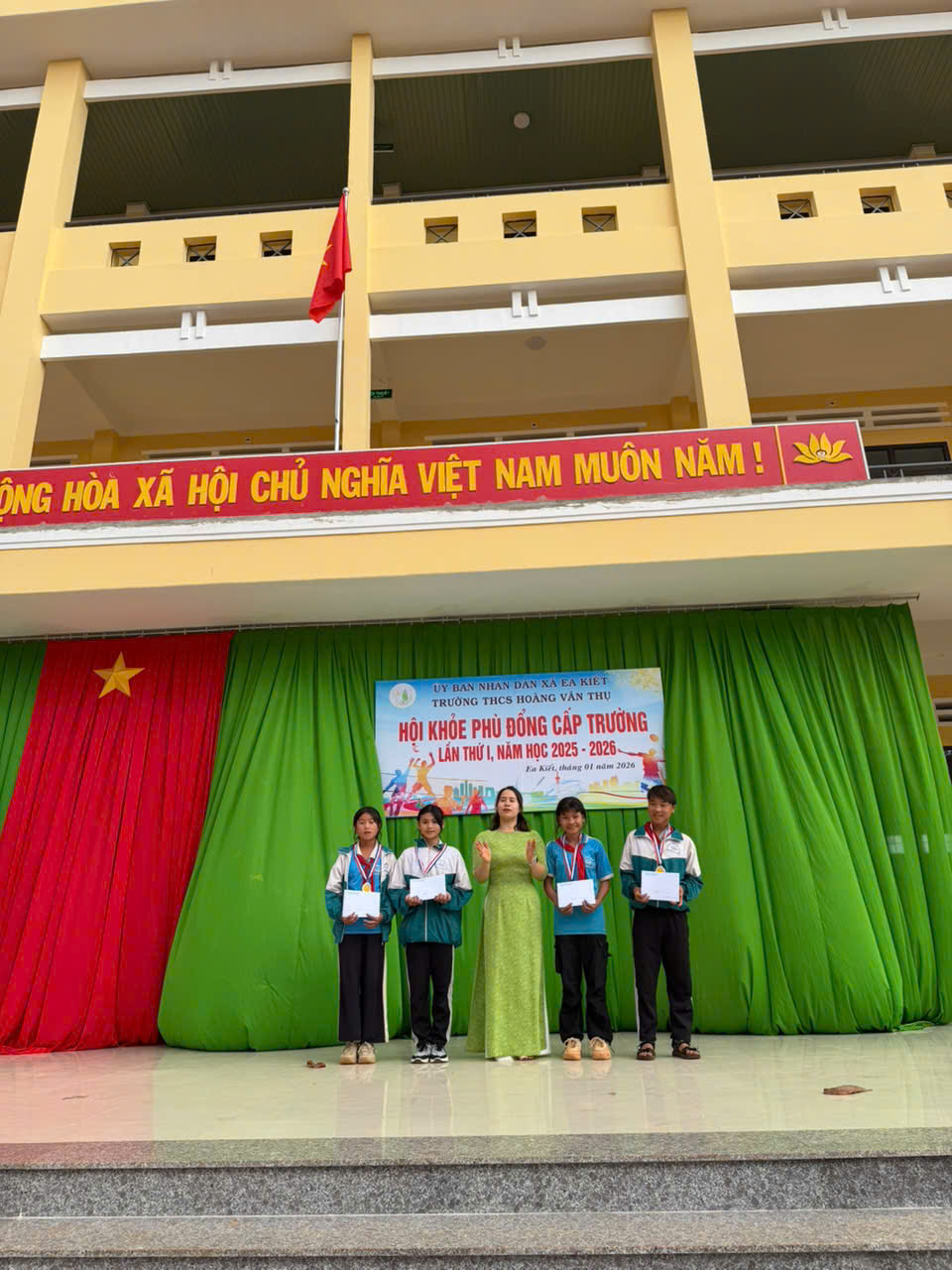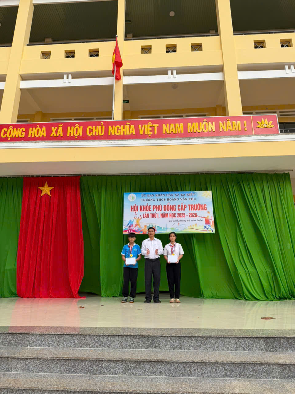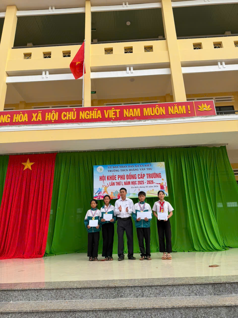 Thực hiện kế hoạch số 08/KH-HVT ngày 015/1/2026 của Trường THCS Hoàng Văn Thụ, nhằm chào mừng Thành công Đại hội đại tiểu toàn quốc và mừng xuân Bính Ngọ. Nhà trường đã long trọng tổ chức Hội khỏe Phù Đổng cấp trường năm học 2025–2026 với tinh thần “Khỏe để học tập, xây dựng và bảo vệ Tổ quốc”.