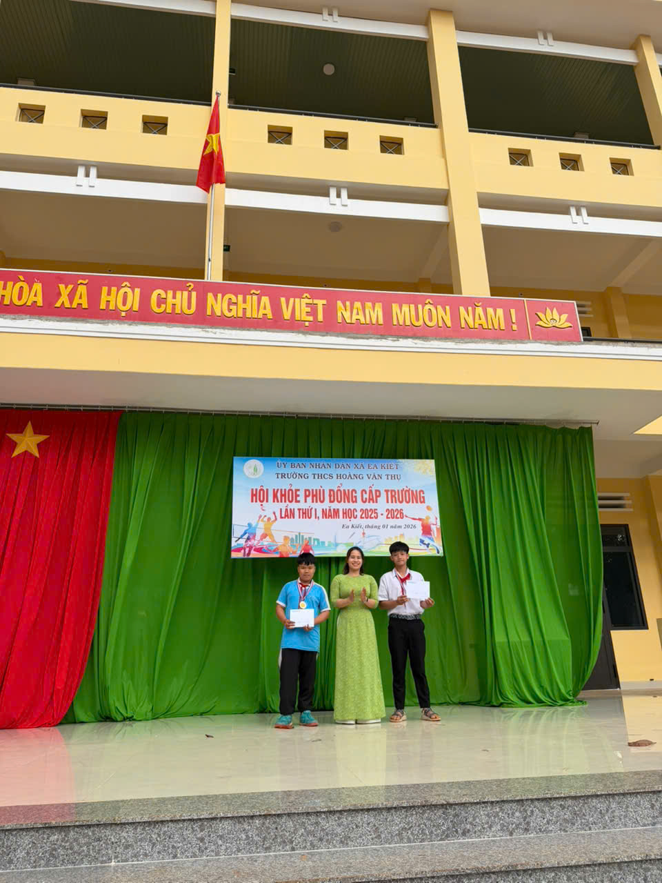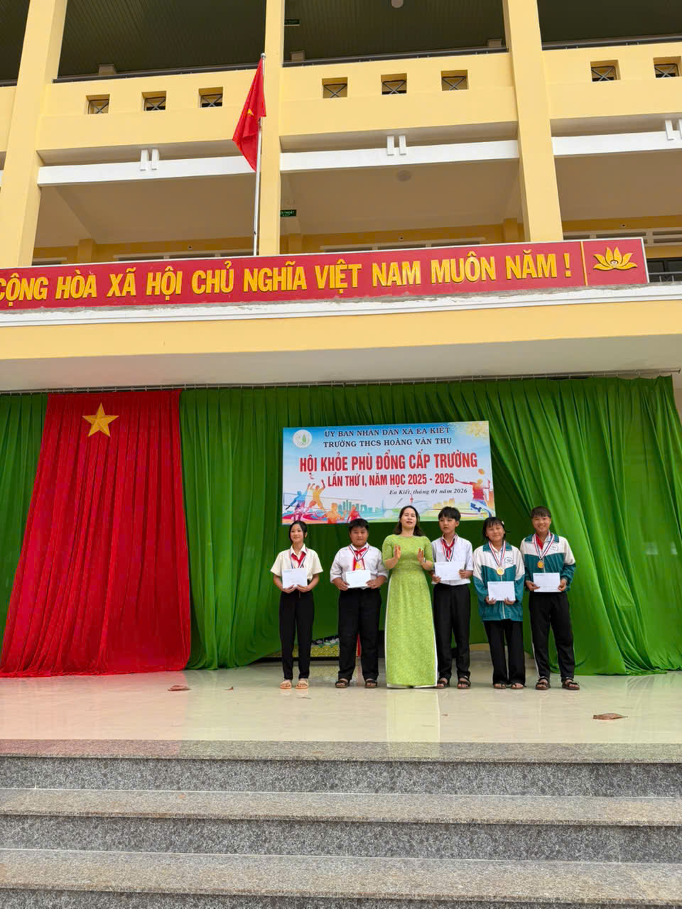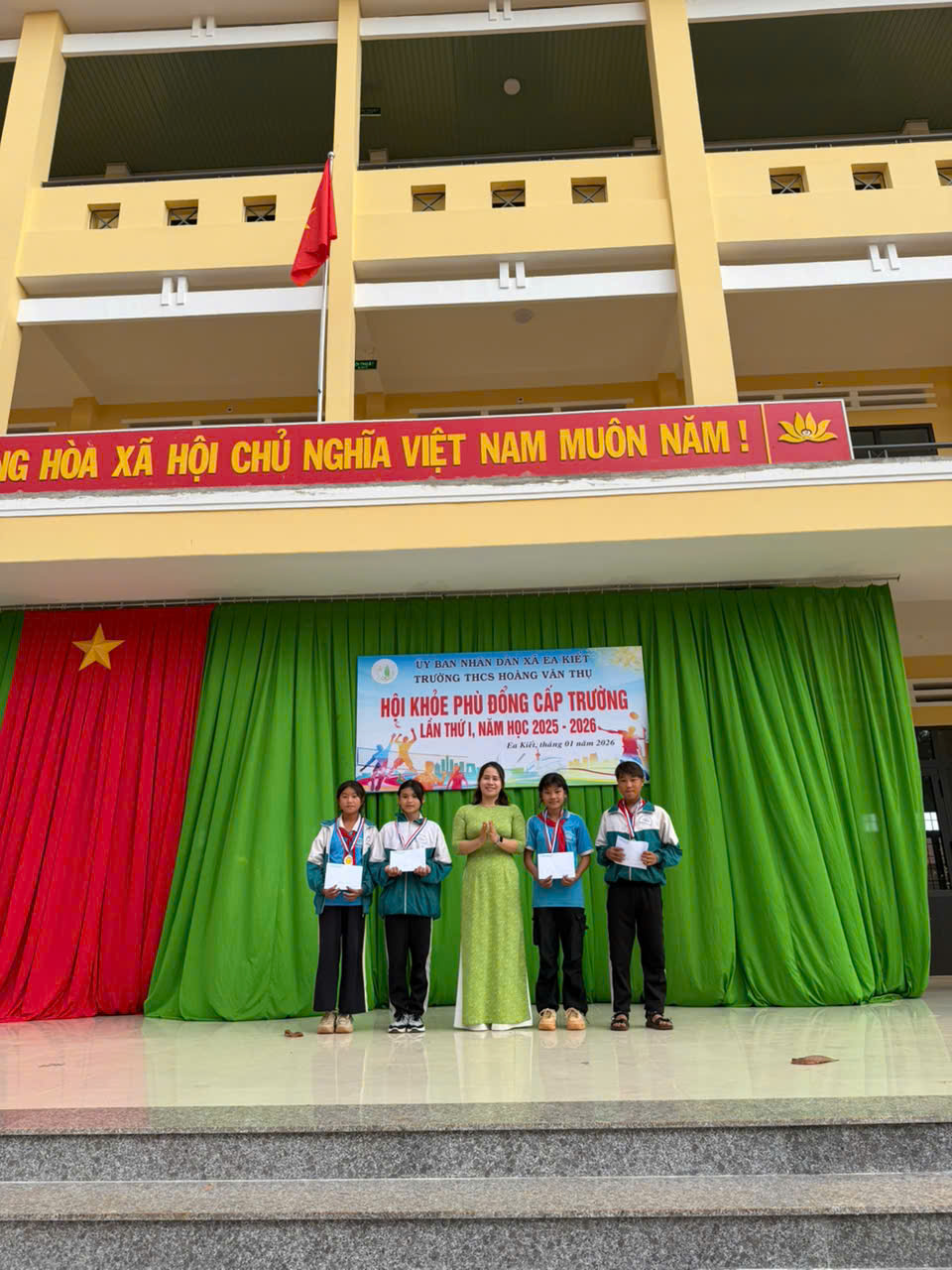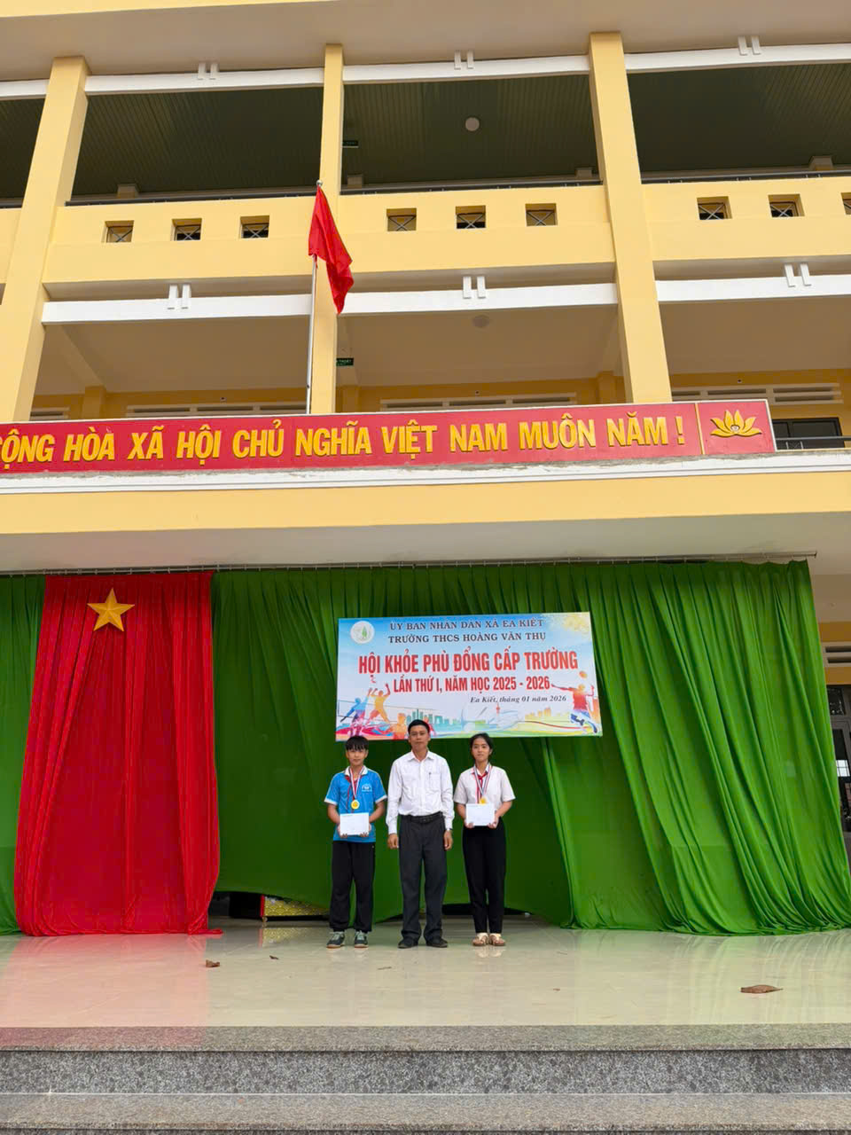 Thực hiện kế hoạch số 08/KH-HVT ngày 015/1/2026 của Trường THCS Hoàng Văn Thụ, nhằm chào mừng Thành công Đại hội đại tiểu toàn quốc và mừng xuân Bính Ngọ. Nhà trường đã long trọng tổ chức Hội khỏe Phù Đổng cấp trường năm học 2025–2026 với tinh thần “Khỏe để học tập, xây dựng và bảo vệ Tổ quốc”.