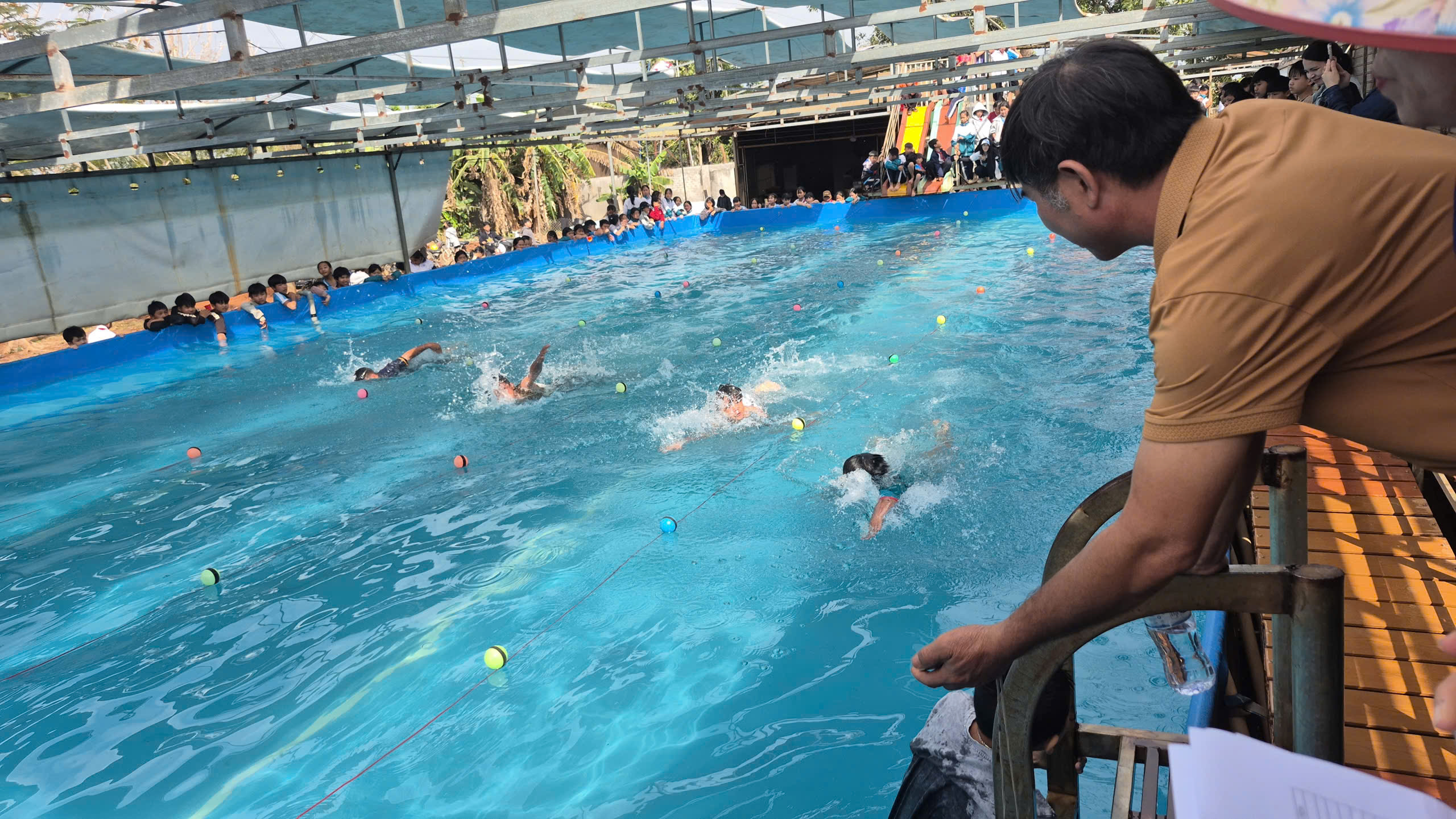 Bơi ếch, bơi sải nam- nữ khối 6-7. 8-9 (tổ chức tại hồ bơi của nhà trường).