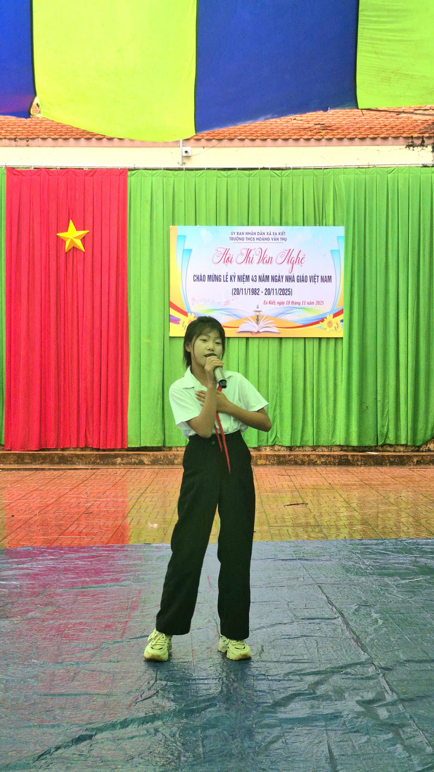Chiều ngày 18/11, Liên đội THCS Hoàng Văn Thụ đã sôi nổi tổ chức Hội thi văn nghệ chào mừng 43 năm Ngày nhà giáo Việt Nam. Đây là dịp để các bạn đội viên, học sinh bày tỏ lòng biết ơn đến quý thầy cô thông qua những giai điệu, lời ca tiếng hát.