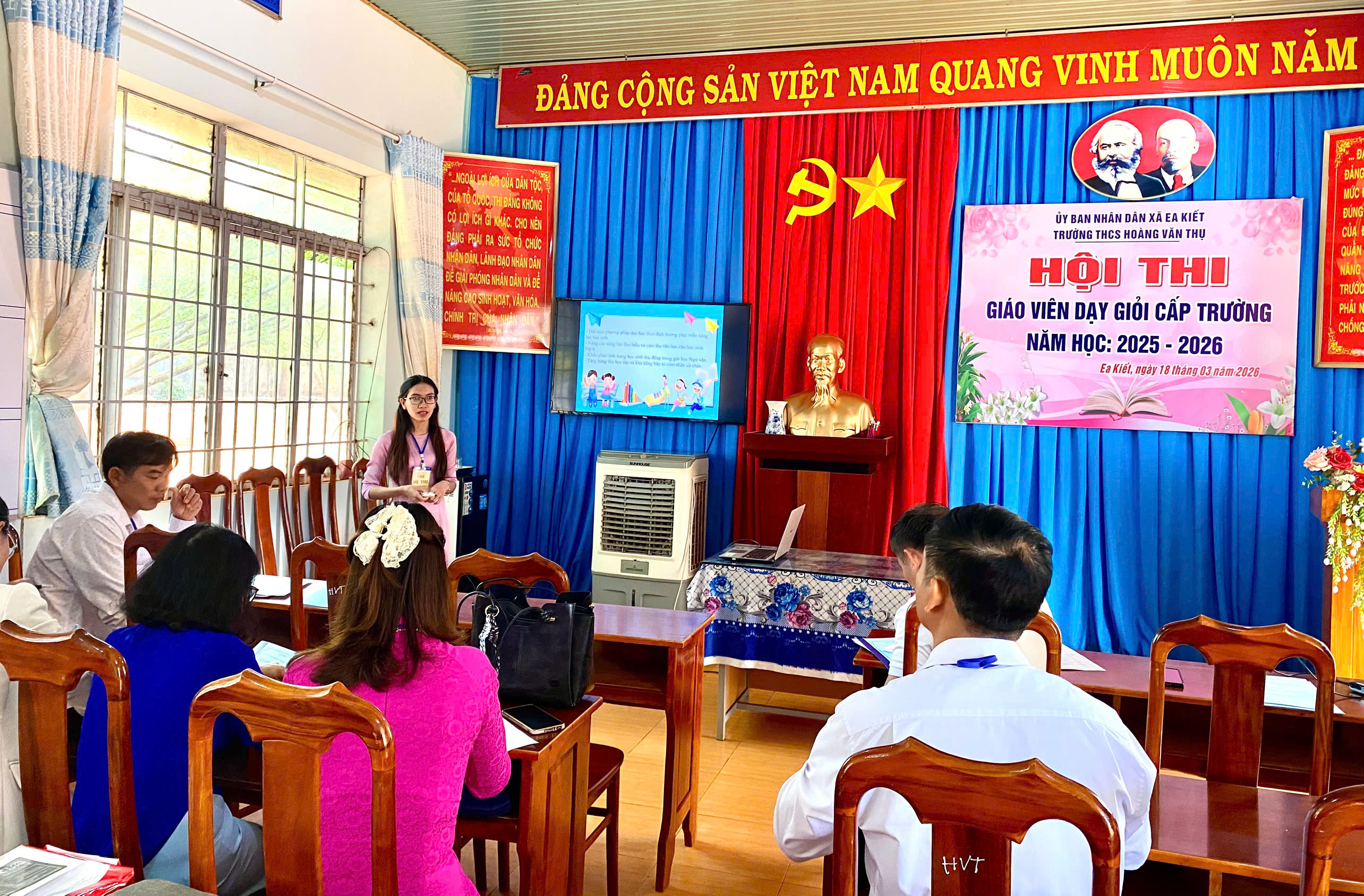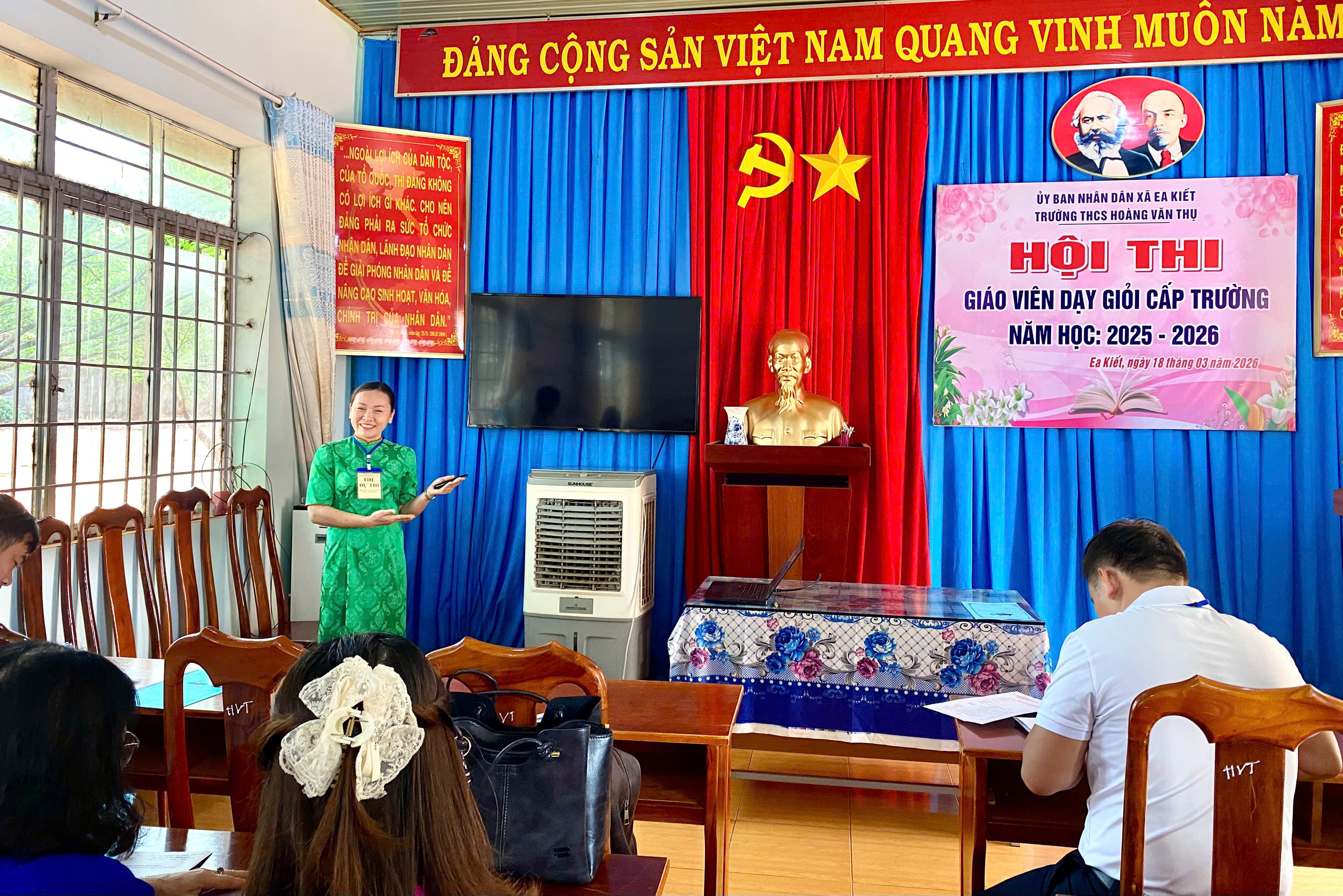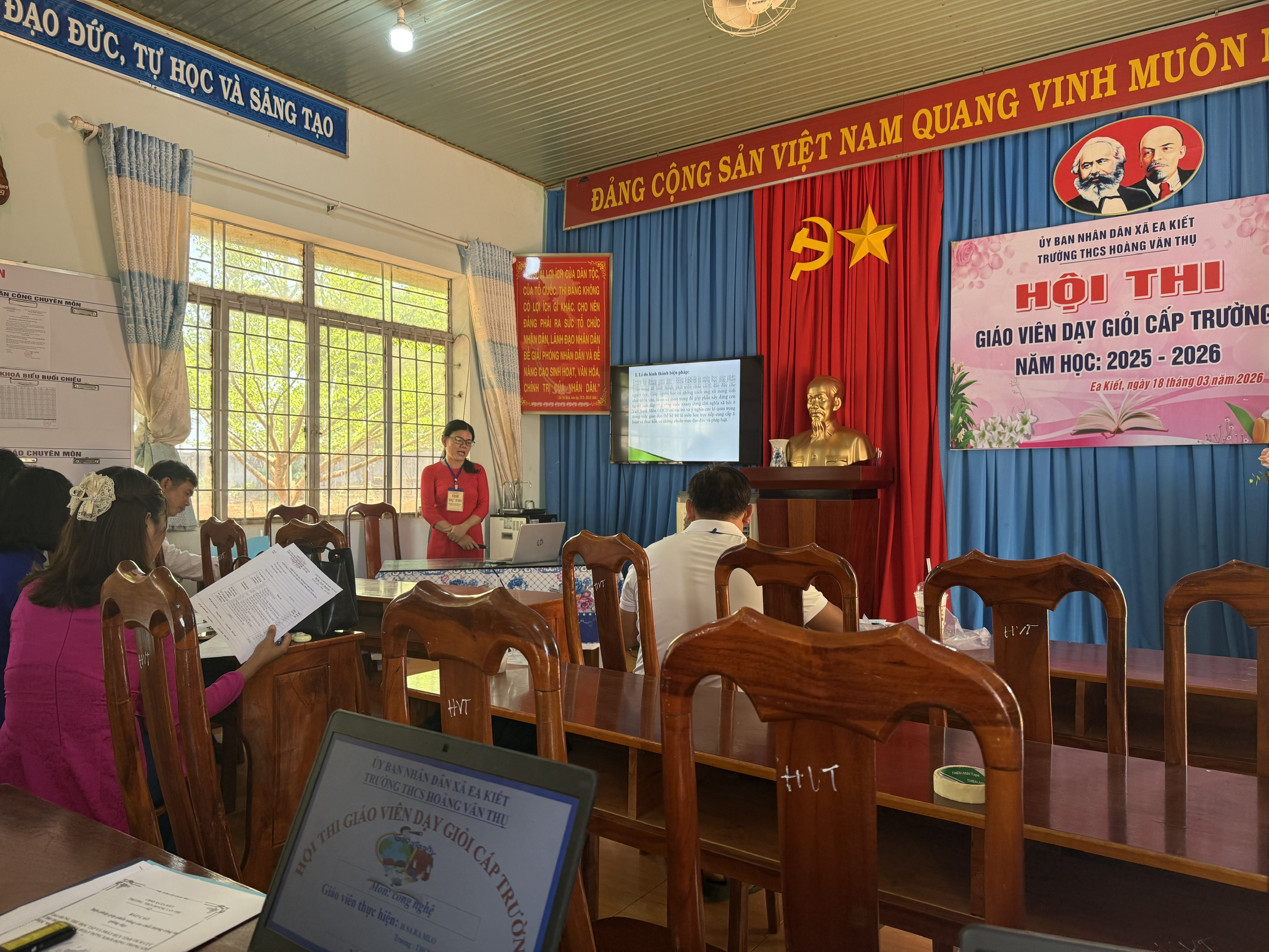 Hằng năm, hội thi Giáo viên dạy giỏi cấp trường luôn là một trong những hoạt động chuyên môn có ý nghĩa sâu sắc, là dịp để đội ngũ giáo viên của Trường THCS Hoàng Văn Thụ thể hiện năng lực, bản lĩnh nghề nghiệp và tỏa sáng trong những giờ dạy được chuẩn bị công phu, sáng tạo. Năm học 2025 – 2026, hội thi tiếp tục được tổ chức trong không khí thi đua sôi nổi, quyết tâm thực hiện thắng lợi nhiệm vụ năm học, đáp ứng yêu cầu đổi mới căn bản, toàn diện giáo dục và đào tạo.