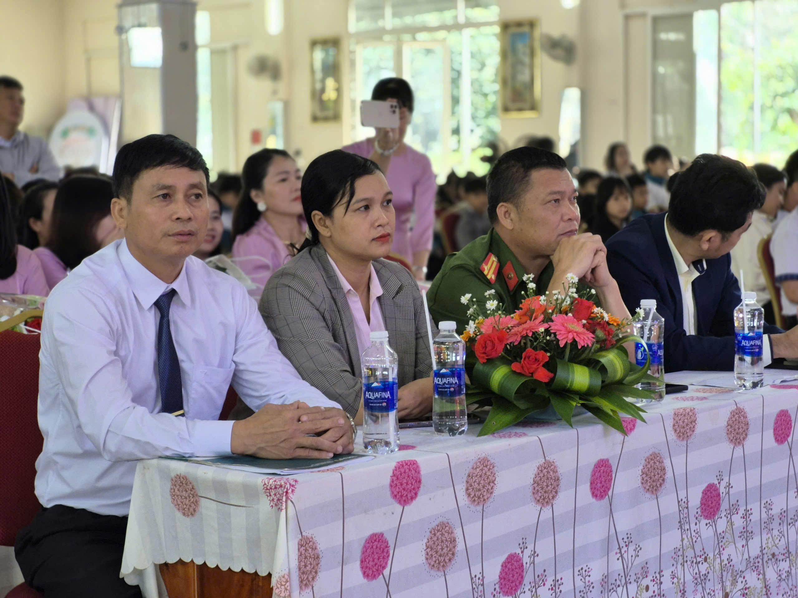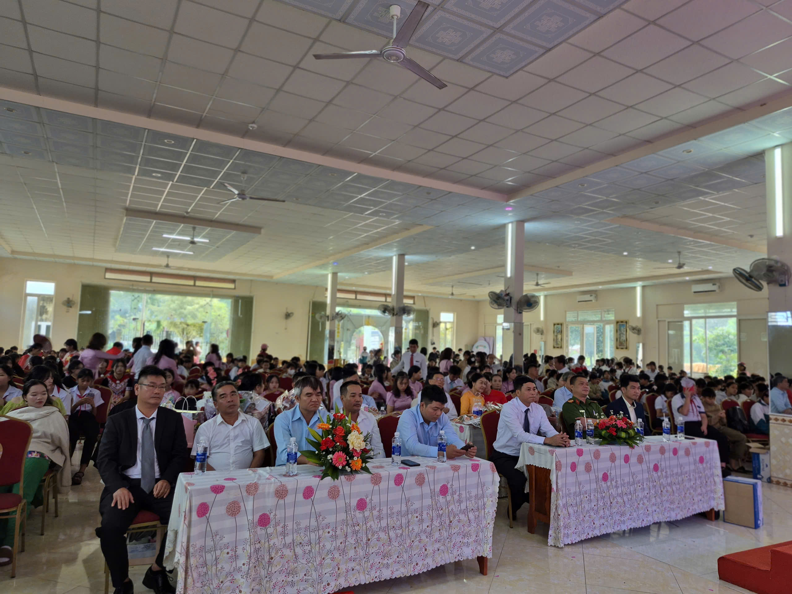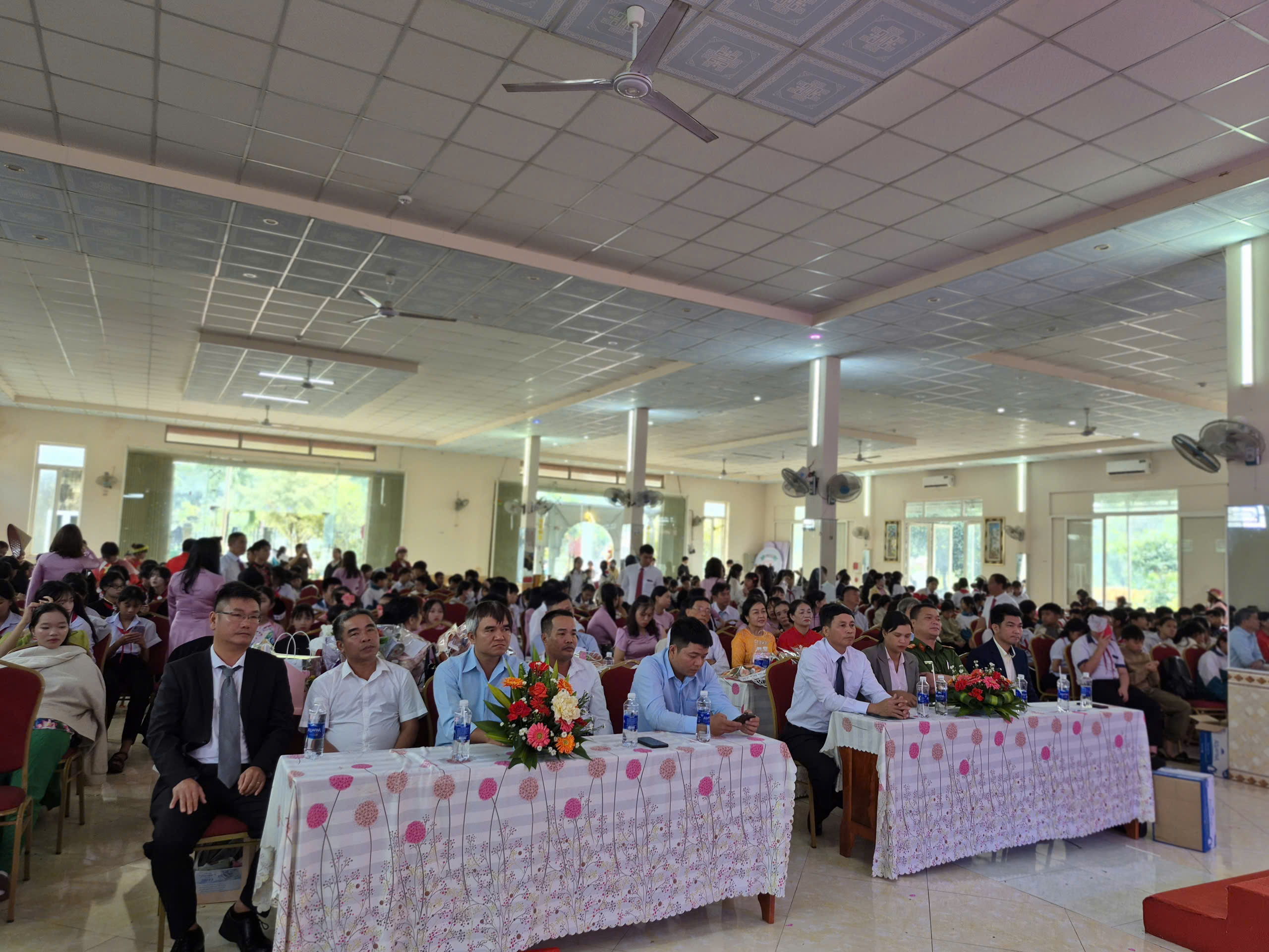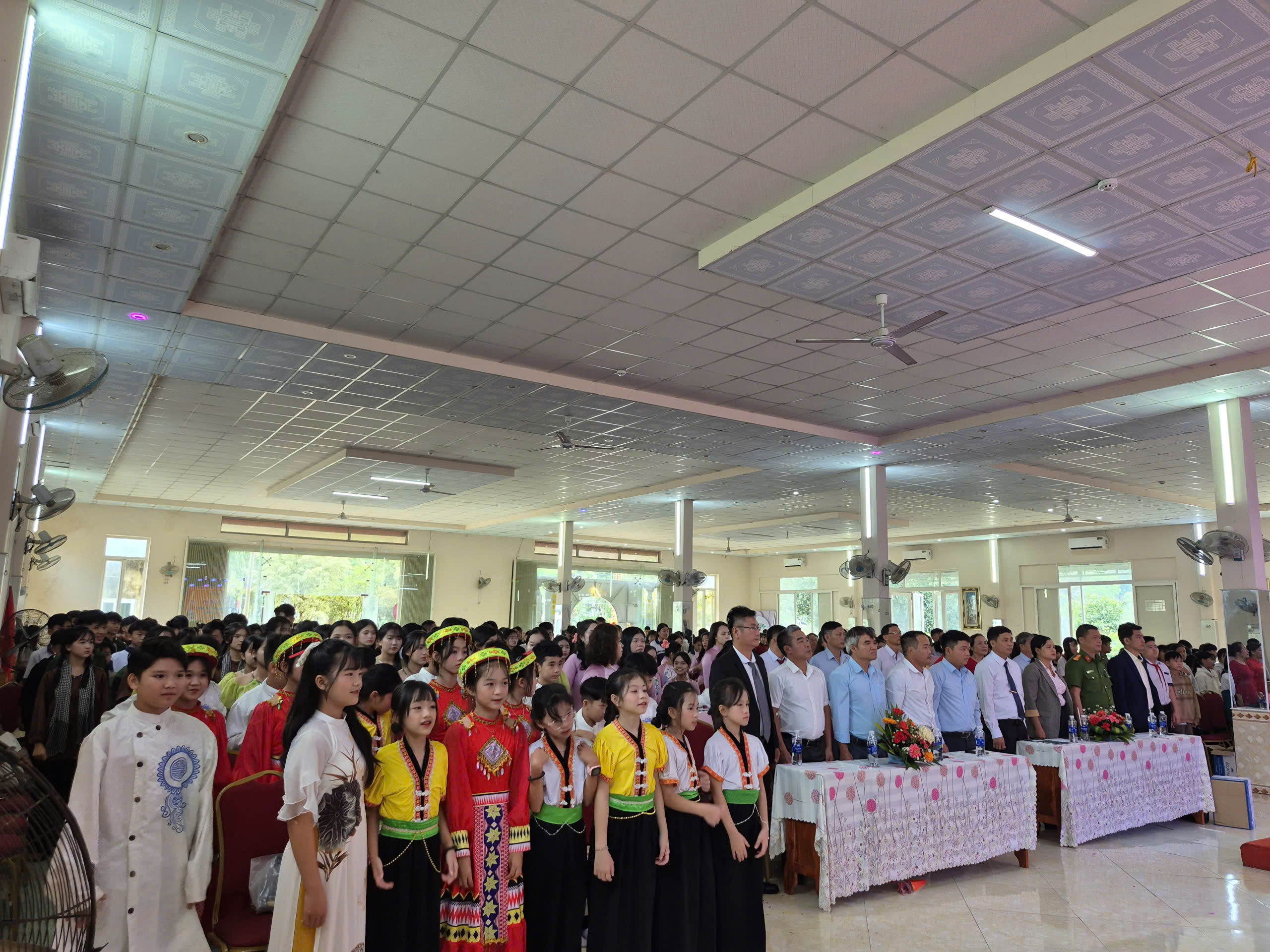 và toàn thể các thầy giáo cô giáo và các em học sinh cũng về dự đông đủ.